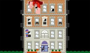 There are two ways to perform this glitch. When the glitch is performed, the game can't progress, regardless of the fact all windows on the current floor have been fixed. Ralph will continue to throw bricks and Felix can still be moved, but the game will stay on the current floor. One way of performing this glitch is to 'die' just as the last window on the floor is fixed. The second way to perform the glitch is to press the fix button on a window and have Ralph wreck the window while it's being fixed.